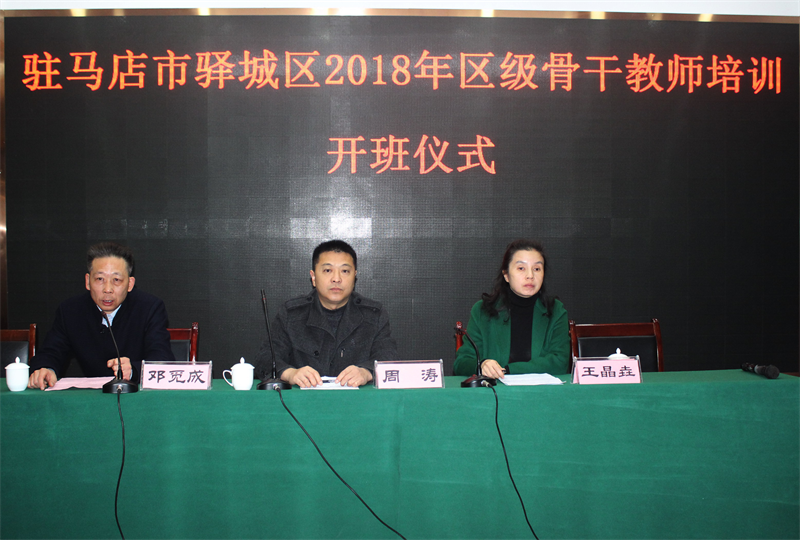 11月27日至12月2日驻马店市驿城区2018年区级骨干教师培训班在pg娱乐电子官网举行。11月28日上午举行了开班仪式,驻马店市驿城区教育体育局副局长王晶垚,pg娱乐电子官网党总支书记周涛,副院长邓觅成和100多名参训教师参加了开班仪式。仪式由邓觅成主持。