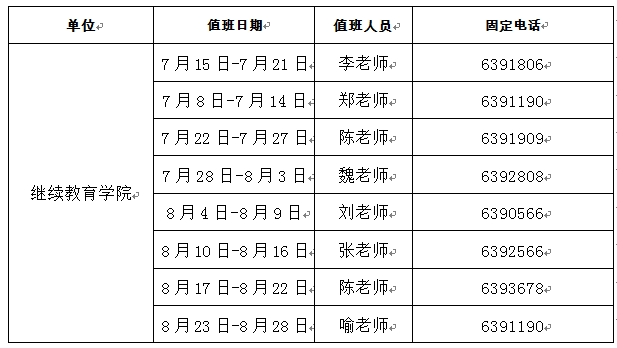 pg娱乐电子游戏官网入口2023年暑期值班表